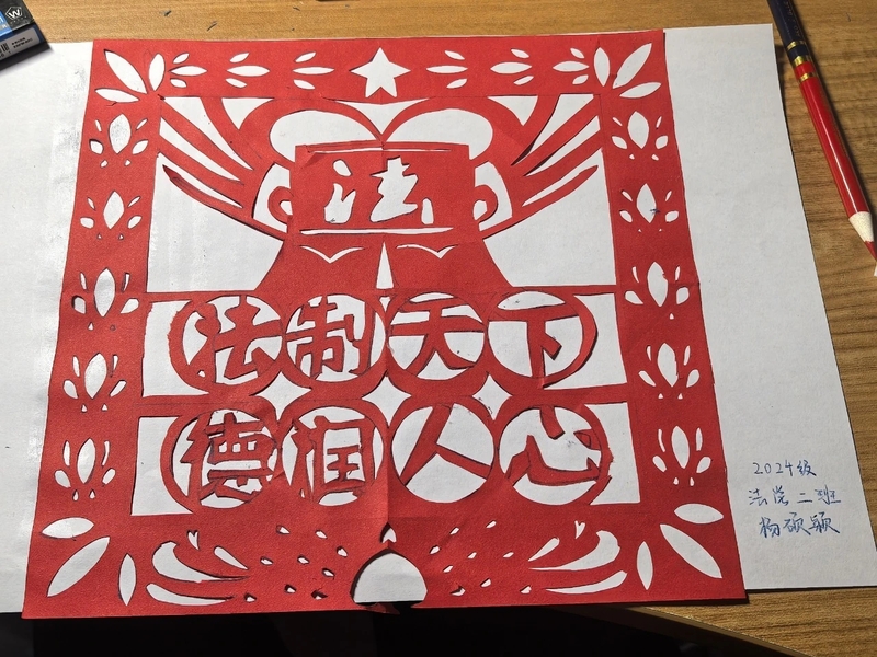 为进一步传承中华优秀传统文化,将非遗技艺与法治精神深度融合,丰富“孔子学堂”系列活动内涵,11月3日,法学院团委精心策划并举办了“剪纸清风・法润非遗”剪纸活动。此次活动以喜闻乐见的剪纸艺术为载体,让法治理念以生动且贴近生活的方式走进师生心中,营造了尊法学法守法用法的良好氛围。