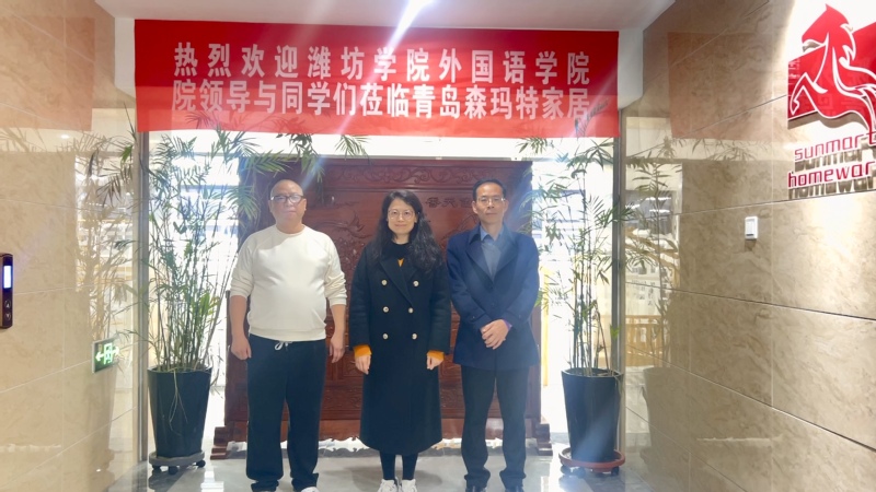 随后,学子们前往青岛森玛特家居,在企业负责人引导下,参观产品展厅与办公区域,直观感受企业运营模式与岗位需求。交流环节,公司董事长马波以“坚守与创新”为核心,结合从业经验分享行业洞察,建议外语专业学子善用语言工具,打通跨文化沟通壁垒,在细分领域挖掘价值。