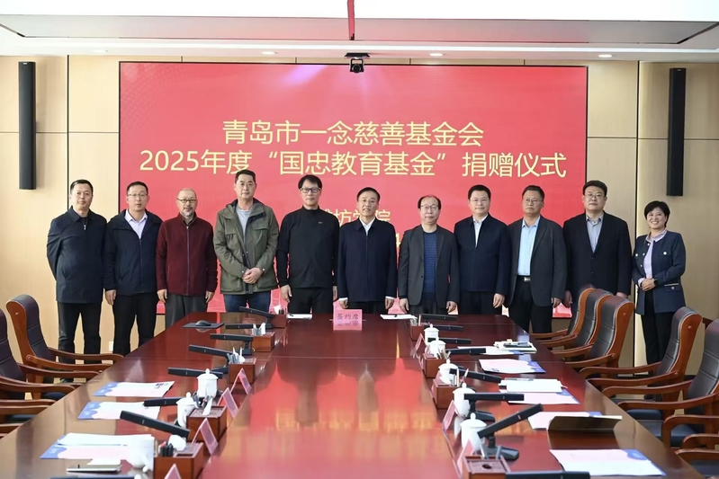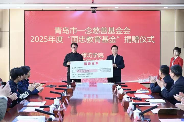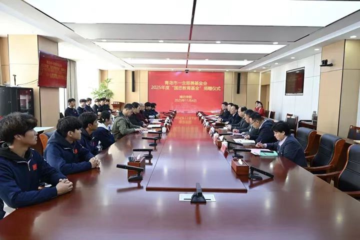 11月4日,青岛市一念慈善基金会 2025 年度 “国忠教育基金” 捐赠仪式在学校举行。山东力威集团董事长、青岛市一念慈善基金会理事长刘国忠,青岛市一念慈善基金会秘书长王唯,学校党委书记来逢波,党委委员、副校长李英德、任立春出席仪式。