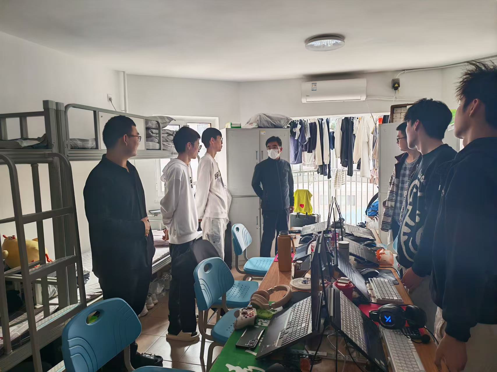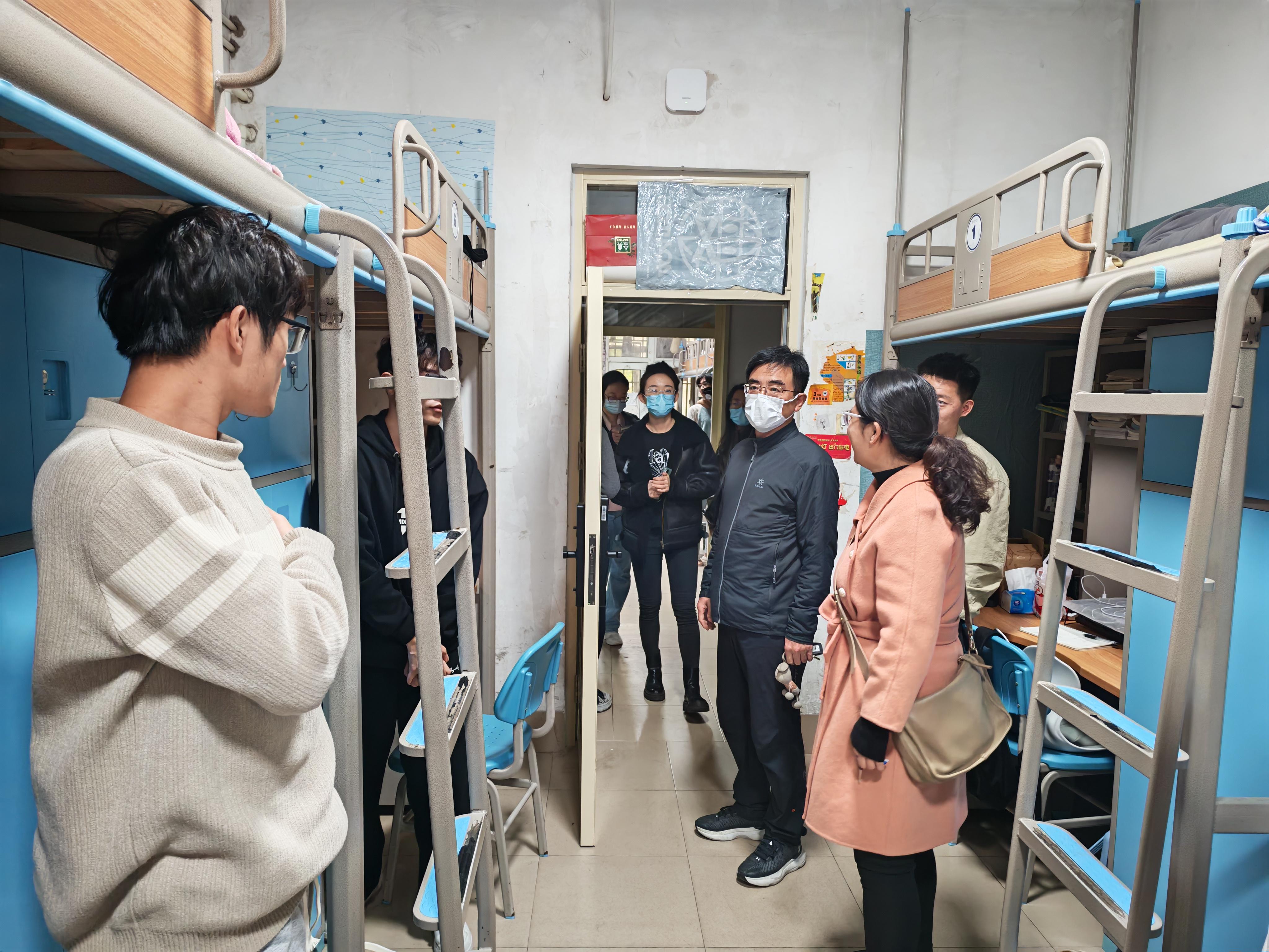 随后,温效朔与辅导员们集体深入学生公寓进行实地走访。检查过程中,领导老师们重点查看了宿舍的消防安全、用电安全、内务整理及卫生状况。他们仔细检查是否存在违规使用大功率电器、私拉乱接电线、存放易燃易爆物品等现象,并对阳台杂物堆放、卫生间清洁、物品摆放等细节提出了明确要求,并叮嘱同学们务必增强安全意识,彻底清除卫生死角,共同维护公共安全。