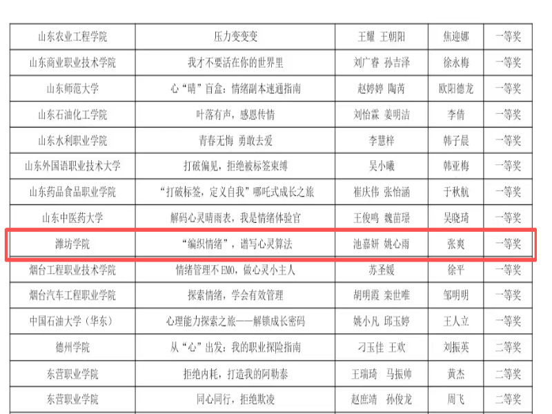 11月10日,山东省高等学校思想政治教育研究会与山东省大学生心理健康教育专业委员会联合发布2025年山东省高校心理健康教育月活动评选结果。计算机工程学院学子凭借对心理健康主题的深刻理解、扎实的内容呈现以及富有专业特色的创新表达,从众多参赛队伍中脱颖而出,最终斩获一等奖1项、三等奖1项,亮眼成绩背后,是计算机工程学院长期深耕心理健康教育工作的扎实成效,更彰显了以生为本的育人温度。