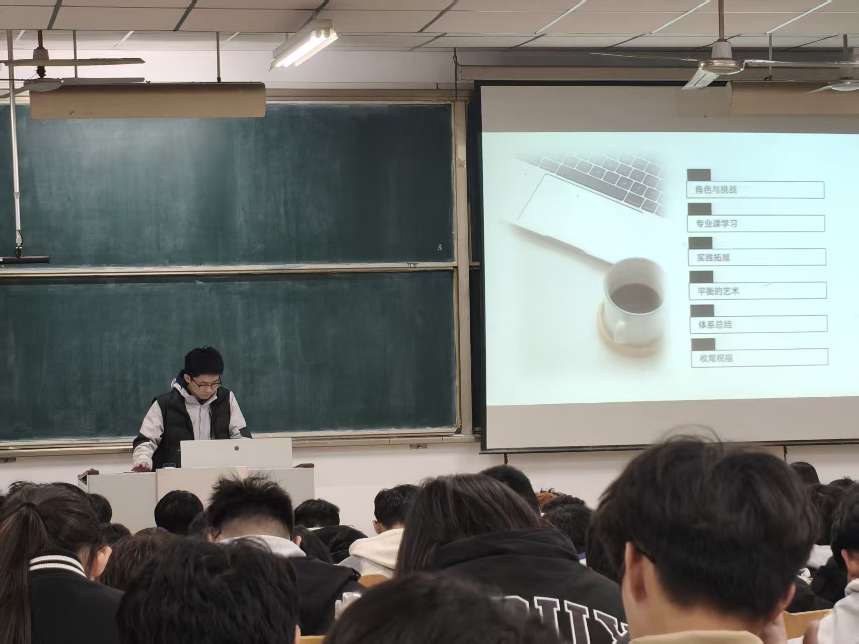 日常学习有妙招,学业规划不迷茫。张一顺同学带来“从输入到输出”的高效学习法则,向同学们分享了笔记整理、重难点攻克的小窍门。刘姿翰同学把学习技巧和学业规划紧密结合,教同学们拆解短期目标、整合校内资源,还针对不同年级特点给出建议,让未来发展方向更清晰。