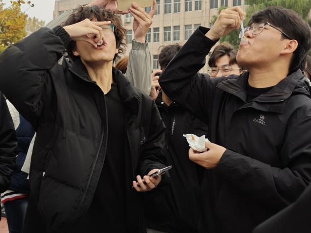 活动尾声,裁判员根据各项目比赛成绩,为前两名队伍颁发小零食作为奖励;同时,为每个项目的后两名队伍设置了趣味惩罚环节,吃蘸芥末酱的饼干、品尝酸梅精、饮用蛇草水等环节,让现场气氛持续升温,欢声笑语不断。