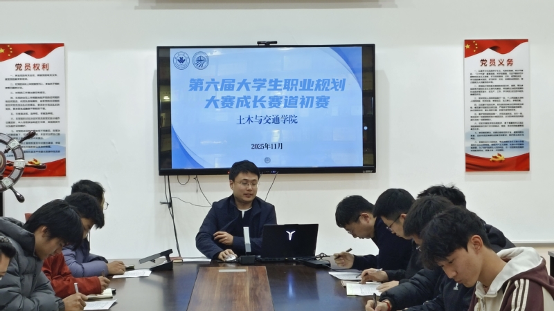 为帮助学子明确发展方向,提升生涯规划能力,树立正确的就业观念。2025年11月16日,土木与交通学院在6104会议室顺利举办大学生规划大赛成长赛道初赛。本次比赛由马俊原老师主持,全体辅导员及学生干部代表参加。