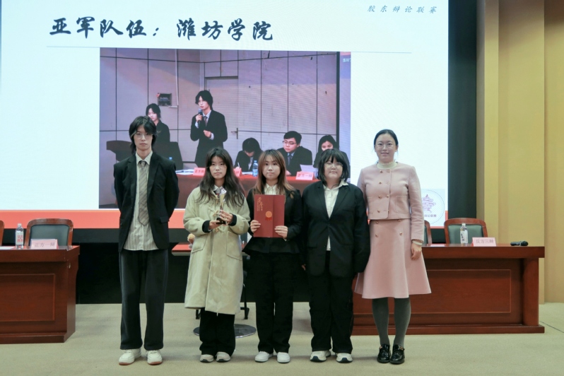 华语辩论世界杯自2012年创办以来,已成为衔接高校思想交流的重要平台与衡量辩论水平的关键标尺。本次青岛赛区强校林立,中国海洋大学、山东大学、中国石油大学等十余所高校辩论队同台竞技。面对劲敌,潍院辩论队展现出卓越的思辨素养与团队韧性:小组赛连克山东科技大学与青岛理工大学,以全胜战绩强势出线;复赛稳扎稳打,成功跻身四强;此后更一路披荆斩棘,接连战胜上届亚军、季军等强劲对手;在决赛中,我校辩手与山东大学展开激烈思维交锋,立论有据、驳论犀利,各个环节均展现出高水准的思辨素养,展现出以文史为基、敢言善辩的潍院气度,为观众奉献了一场精彩的语言与思想盛宴。
