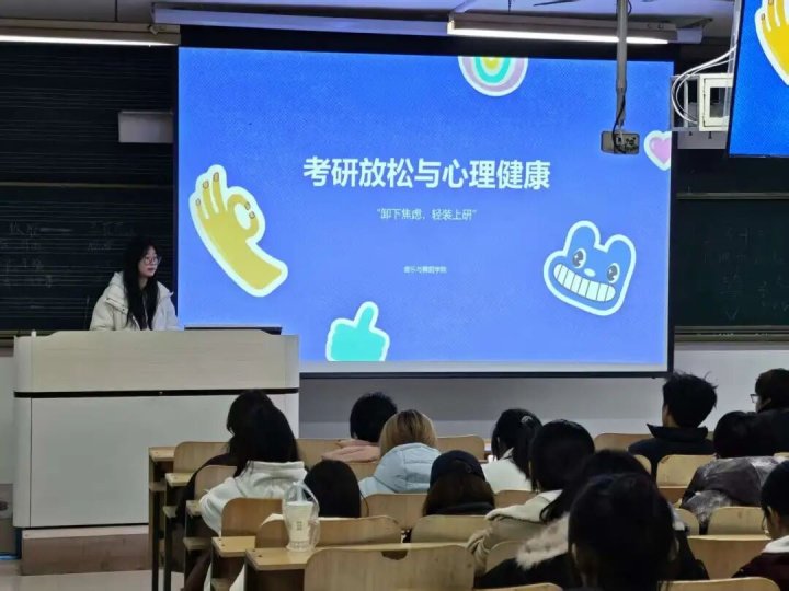 为帮助考研学子有效缓解备考压力,筑牢心理防线、提升情绪调节能力,11月20日,音乐与舞蹈学院于T401教室举办以“卸下焦虑,轻装上研”为主题的心理健康放松会,为正在逐梦前行的学子送去温暖关怀与心理支持。