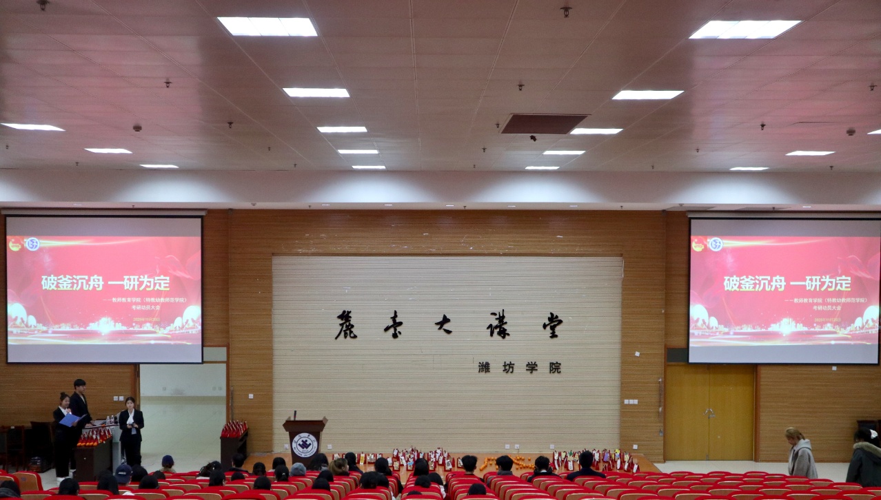 为帮助考研学子进一步明确考研目标、增强备考信心、科学规划复习进程,营造积极向上的学习氛围,11月20日晚,教师教育学院(特教幼教师范学院)在三号楼四楼报告厅举行2025年考研动员大会,学院副院长柴林丽以及部分辅导员、专任教师出席活动,为考研学子加油助威。