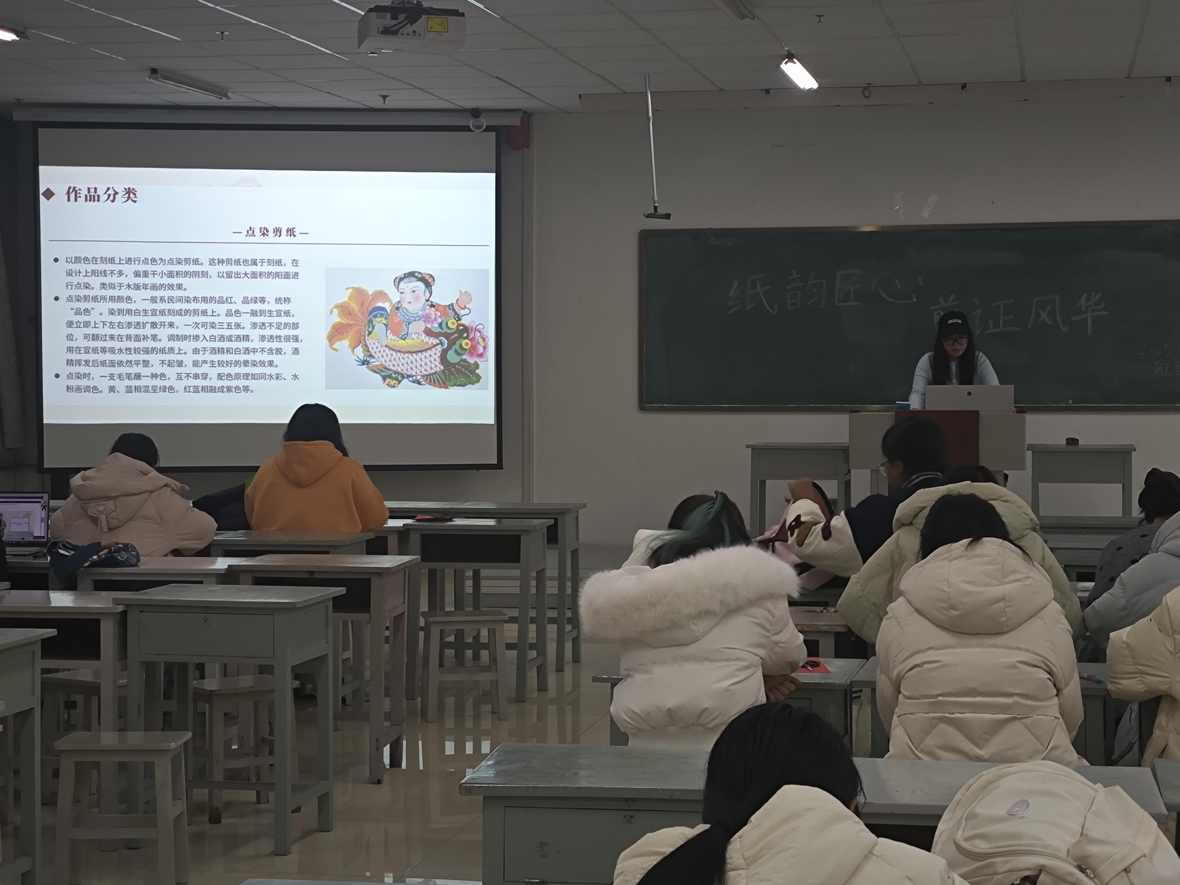 活动现场氛围热烈而有序。活动伊始,雅韵社社团成员以图文并茂的形式,从剪纸的西汉起源讲起,深入解析其与传统民俗的深度绑定,展现南北不同风格的艺术特色,并通过经典作品展示与趣味提问互动,充分调动同学们的兴趣。