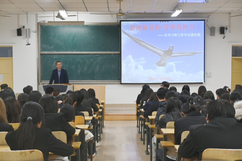 开班仪式后,学院党委书记刘德才以《奋进新征程·青春勇担当——在学习和工作中完善自我》为题,为全体学员讲授开班第一课。他以深入学习贯彻党的二十届四中全会精神为切入点,紧密围绕“精准认识自我”与“全面完善自我”两大维度系统展开。授课中,刘书记着重引导学生骨干明晰“学习者”“服务者”“引领者”的三重角色定位,强调要始终坚守“学业为本”的核心原则,在积极锻炼综合能力的同时,牢记服务同学的初心使命,通过思想淬炼坚定信念、实践锻炼增长才干、能力训练提升本领,全面强化综合素养,最终实现个人成长与集体发展的同频共振,让青春在服务学院发展中绽放光彩。