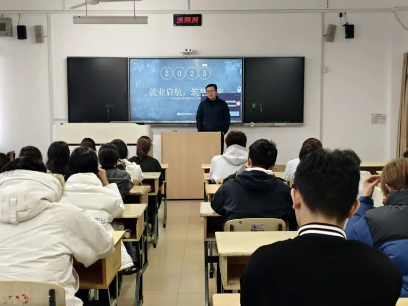 班会伊始,张林强调学习始终是学生的第一要务,他结合人事工作实际,谈到了招聘环节对学生素质的要求。他提到,在如今就业形式严峻的大环境下,企业愈发看重学生的学历、综合能力与素养,除了扎实的专业知识,良好的学习能力、沟通表达能力以及创新思维等,都是就业单位重点考察的方面。