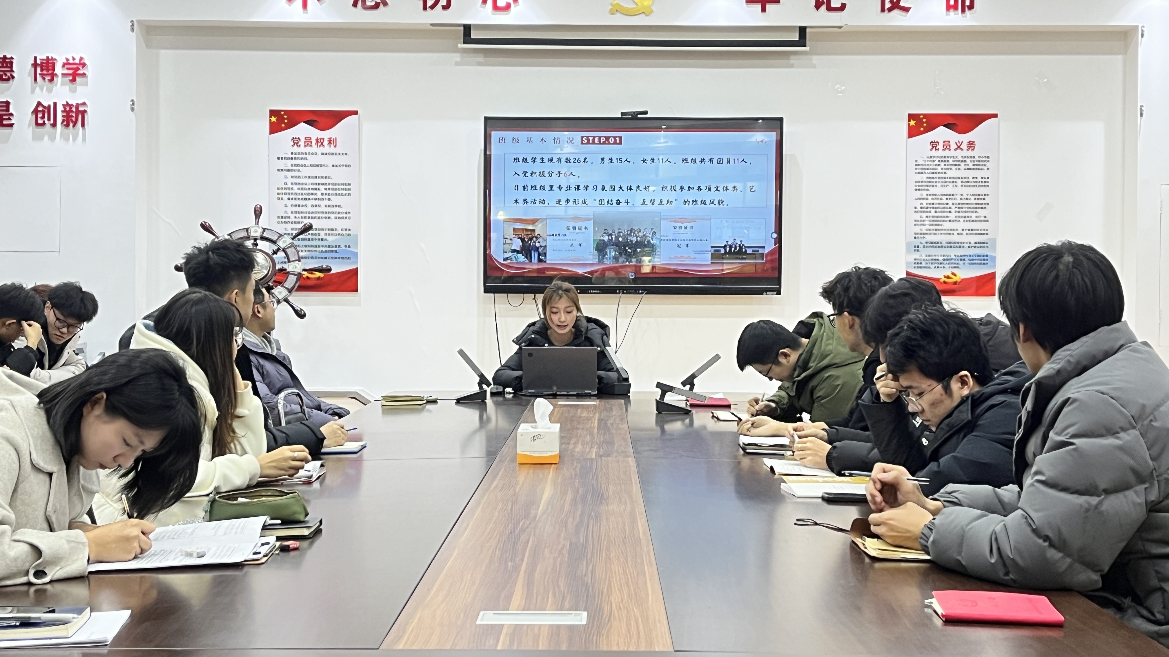 辅导员老师认真听取学生汇报,并结合自身工作经验与班级实际,对汇报内容逐一点评,提出针对性指导建议,助力学生干部优化工作方法。