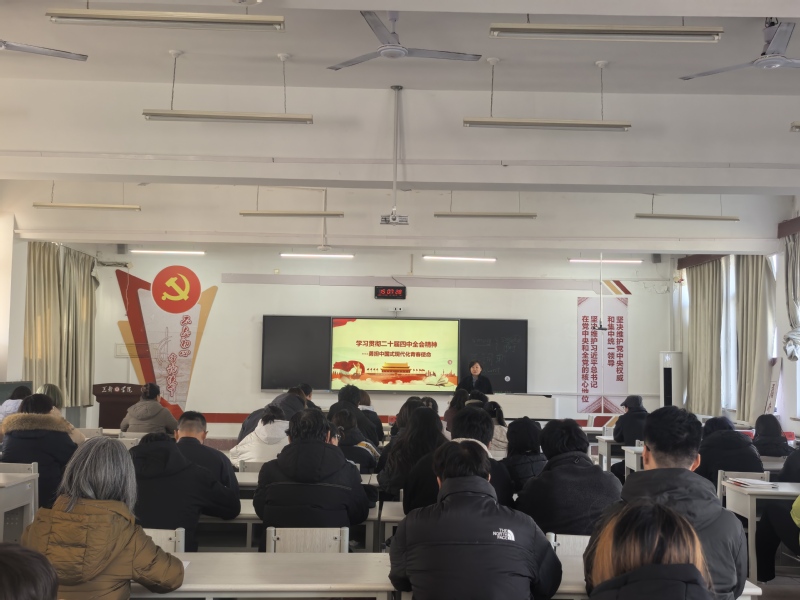 为深入学习宣传贯彻党的二十届四中全会精神,切实把全院教职工的思想和行动统一到党中央决策部署上来,11月28日下午,美术学院(陈介祺金石书法学院)在荟萃楼501分党校活动室召开学习贯彻党的二十届四中全会精神宣讲会。本次宣讲特邀学校宣讲团成员、马克思主义学院教师王浩担任主讲。美术学院(陈介祺金石书法学院)党委书记于恬主持,学院党政班子成员、师生党员、入党积极分子代表参加学习。