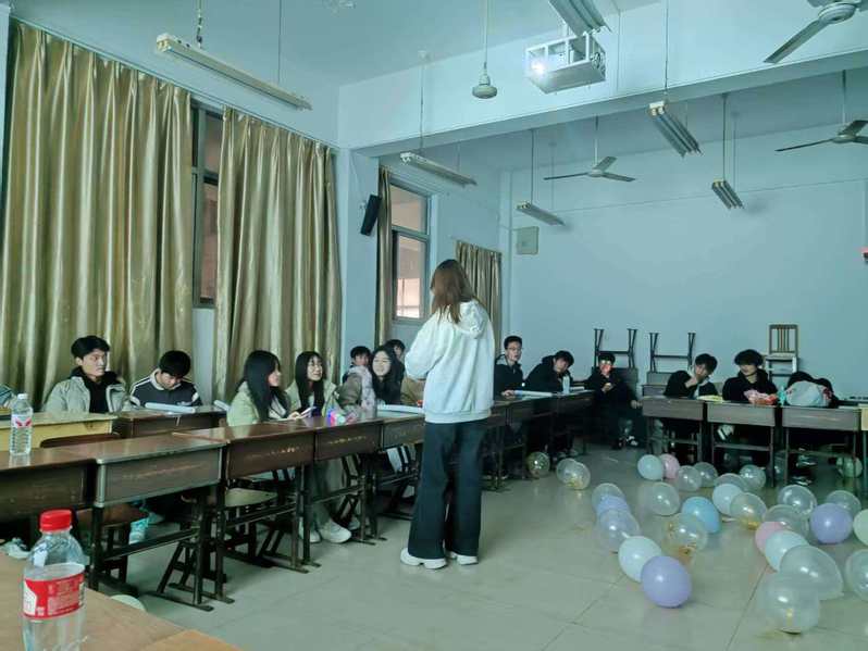 活动伊始,心理部成员精心设计了你来我往、谁是卧底、数字抱团等心理互动游戏,引导同学们在轻松氛围中释放压力、表达自我。通过情绪气球环节,大家将近期的烦恼写在纸上塞进气球,再共同击破,寓意释放压力,轻装前行;信任盲行则通过两人一组的蒙眼行走,提升彼此信任与沟通能力,让同学们在黑暗中感受同班的力量。