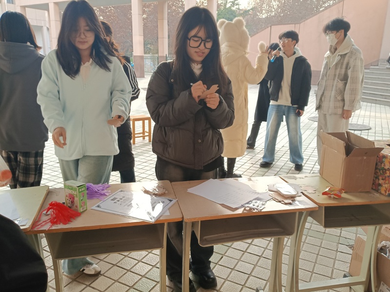 活动一开始,大家先描述一下自己的愿望清单,寄托自己对未来的希望,接着选择来场“毽子飞舞减压赛”热身!看着彩色毽子在脚尖轻盈跳跃,听着周围此起彼伏的欢呼,学习的疲惫、生活的烦躁仿佛都随毽子一起飞远,只剩纯粹的快乐在心头蔓延~ 单人挑战、双人配合、,多种玩法任你选,或者选择“猜歌大挑战”,经典老歌、流行金曲、校园民谣轮番轰炸,只需一句旋律,就能点燃全场。当熟悉的旋律响起,跟着哼唱的瞬间,所有的压力都将被音乐的魔力化解,让我们在歌声中释放自我,感受集体共鸣的温暖。 最后,“扔圈套好礼”环节带你解锁童年乐趣!五颜六色的套圈整齐排列,可爱玩偶、实用文具、创意小摆件等丰厚奖品静待主人。