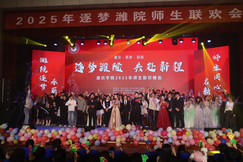 为丰富校园文化生活,营造尊师爱生、和谐共进的育人氛围,12月4日,2025年“逐梦潍院”师生联欢晚会在图书馆报告厅举行。学校师生代表齐聚一堂,共同呈现了一场融合艺术性、思想性与校园特色的文艺盛会。