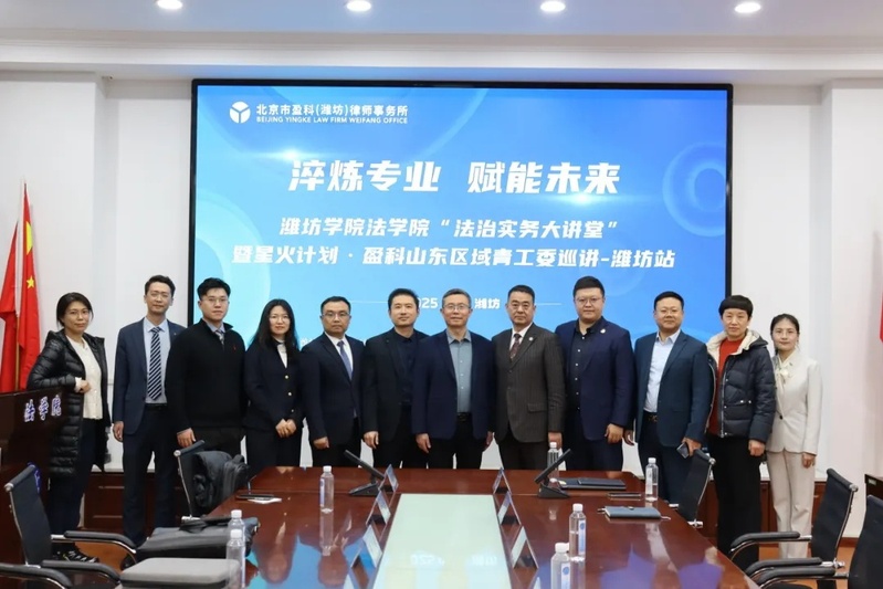 12月5日,潍坊学院法学院“法治实务大讲堂”暨星火计划·盈科山东区域青工委巡讲—潍坊站专题培训活动,在我院8314会议室举行。
