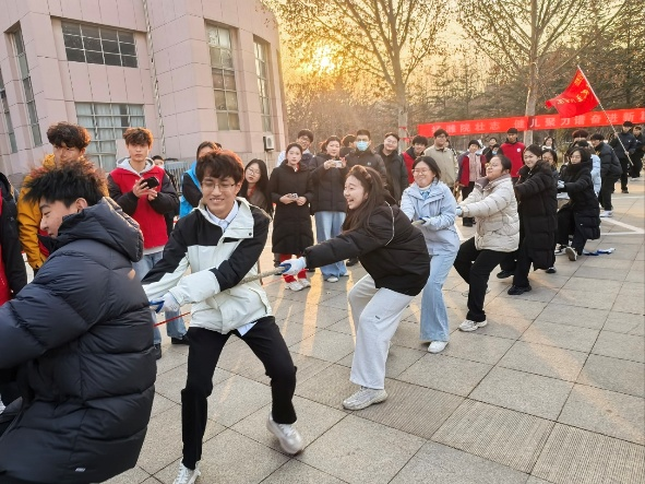 为纪念“一二・九”抗日救亡运动90周年,传承红色基因与爱国精神,引导学生挺膺担当,12月9日,潍坊学院2025年纪念“一二・九”运动大学生拔河比赛在行政楼后广场举行。马克思主义学院积极组织学生参与,在多轮激烈角逐中脱颖而出,最终荣获比赛三等奖。