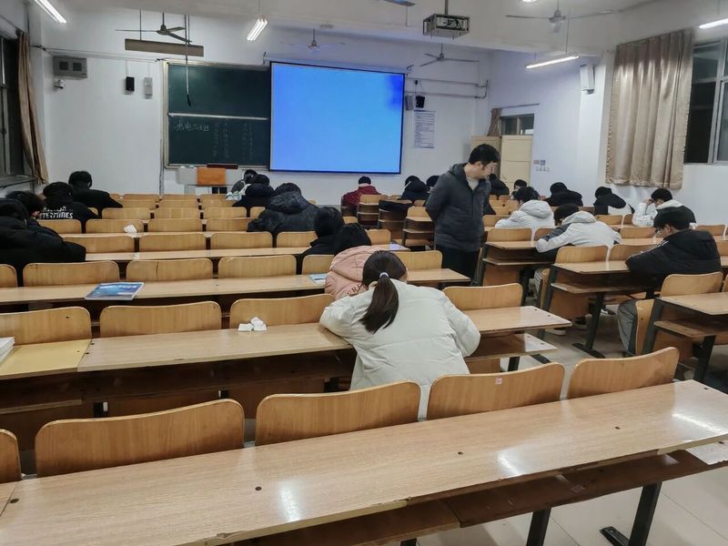 为加强新生对学校规章制度的理解,进一步端正学习态度、规范行为,12月9日晚7点,物电学院于5号楼和7号楼各教室组织2025级新生入学教育考试。学院新生辅导员商超、刘超、王树森到场巡考,2025级全体学生参加考试。
