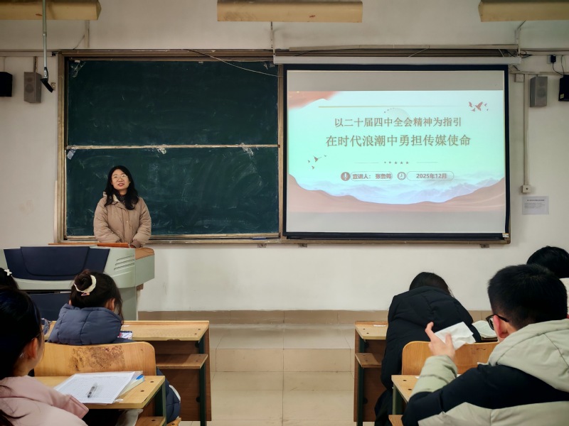 为深入学习贯彻党的二十届四中全会精神,引导青年学子把握时代脉搏、强化使命担当,12月12日上午,传媒学院党委书记张鲁筠在天一楼7407教室以“在时代浪潮中勇担传媒使命”为主题,为同学们讲授了一堂内容丰富、思想深刻的思政金课。