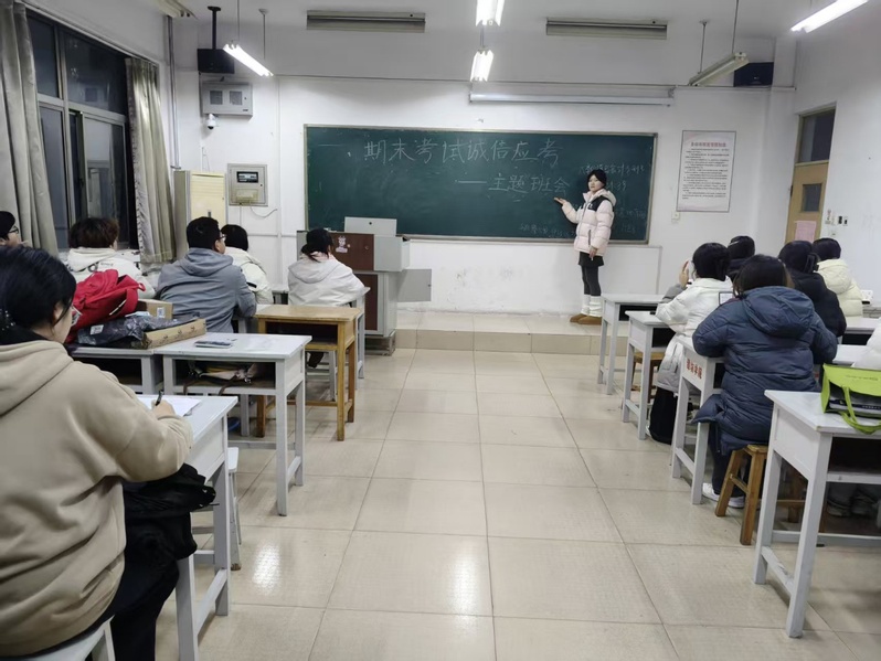 班会现场,各班班长结合考试管理规章制度,从考试违纪作弊的认定情形、处理措施等方面进行细致讲解,通过梳理校内外真实案例,让学生深刻理解诚信应考不仅是对学业的负责,更是个人品德修养的重要体现。在互动研讨环节,学生们围绕“科学备考方法”“诚信应考意义”展开热烈交流,分享高效复习经验的同时,纷纷表达了坚守考试底线、杜绝作弊行为的决心。在承诺签署环节,各班学生依次提笔,在《诚信应考承诺书》上认真签下姓名,这份满载签名的承诺书,既是学生对遵守考场纪律的庄严保证,也是学院诚信教育的生动缩影。