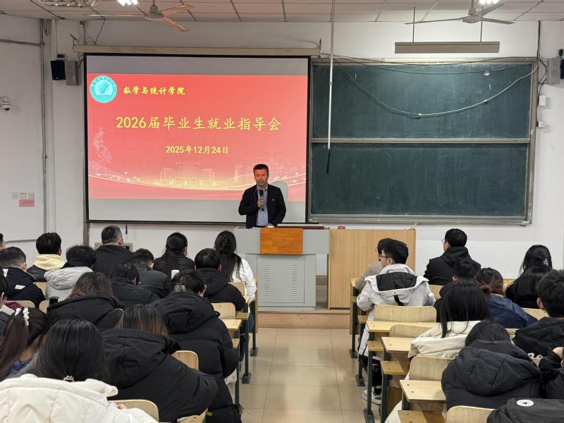 为助力毕业生明晰就业方向、提升就业竞争力,12月24日下午,数学与统计学院在人合楼举办2026届毕业生就业指导会。学校就业指导中心主任谢丽、武装部正科级秘书虞宏章、校团委李亚婷、学院党委副书记杨颂、团委副书记宋志鹏出席活动,退伍学生代表、学院2026届全体毕业生参加,学工办主任王鑫莉主持。