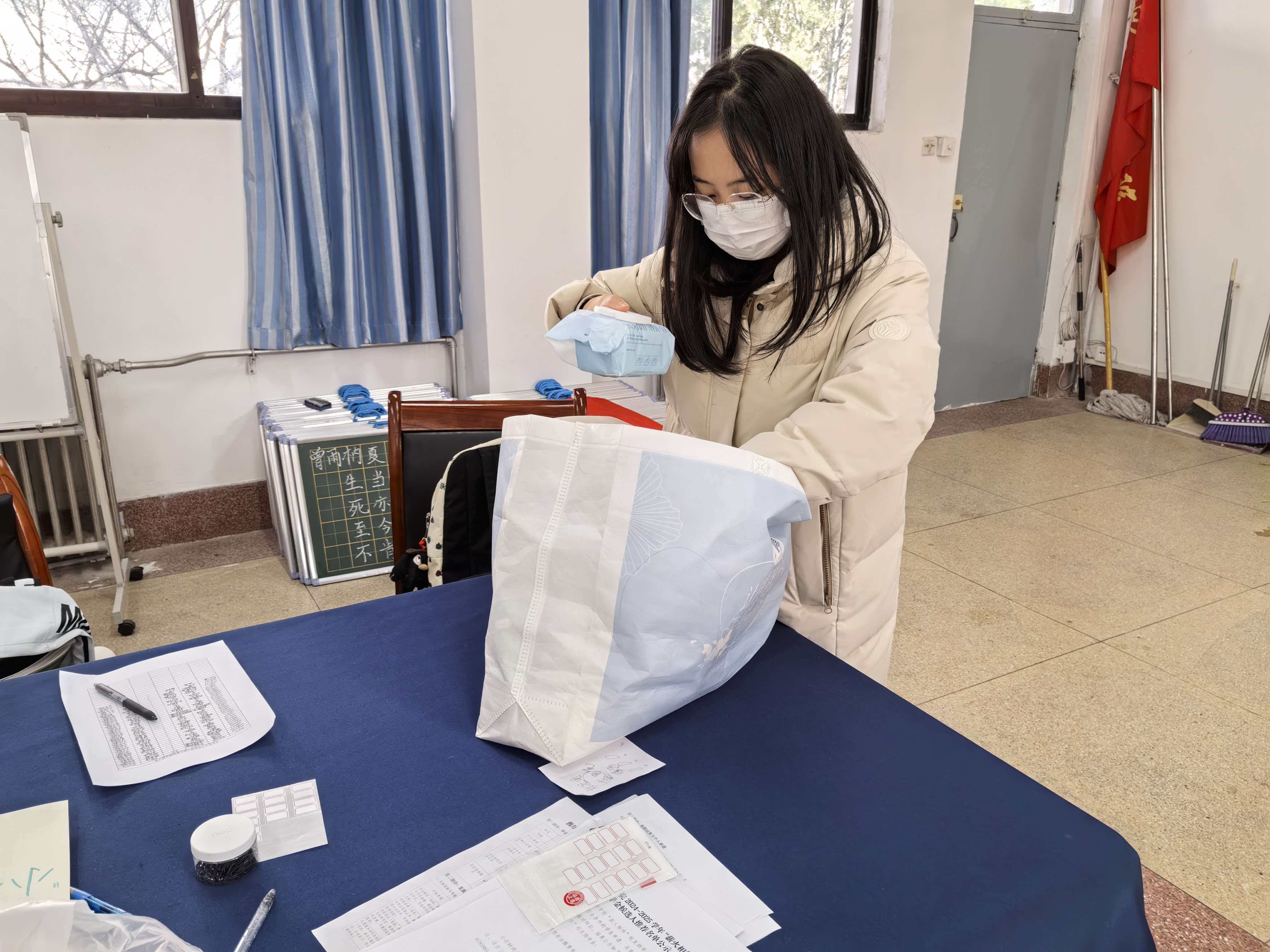 为保障活动高效有序开展,负责人提前统筹规划、细致做好各项筹备工作。在募捐期间,负责人明晰物资登记流程,引导学生完成捐赠登记,展现出认真负责的态度和细致周到的服务,成为冬日校园里一抹暖心的亮色。