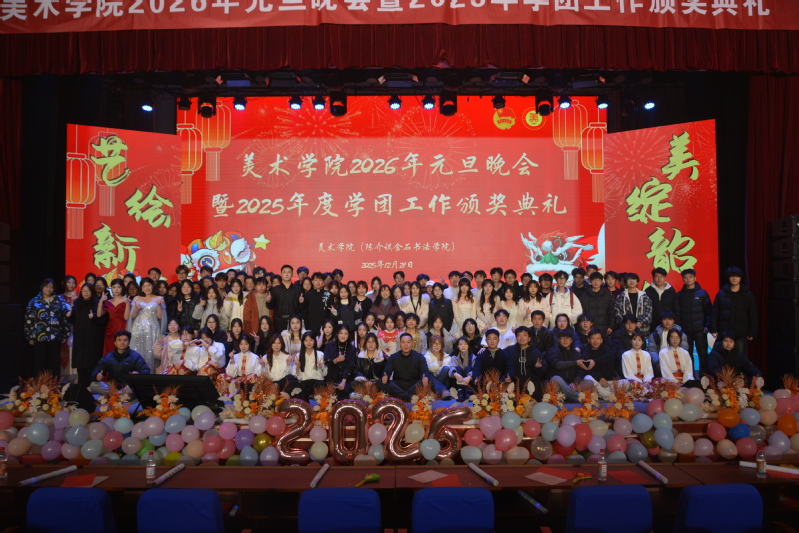 12月29日晚,潍坊学院美术学院在图书馆报告厅隆重举行2026年元旦晚会暨2025年度学团工作颁奖典礼。师生欢聚一堂,以精彩纷呈的节目和庄严温暖的表彰,共同迎接新年的到来。