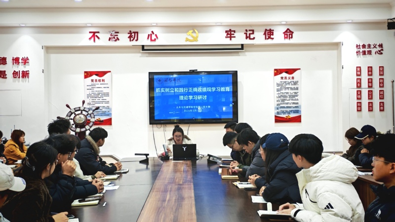 为深入推进正确政绩观学习教育走深走实,引导学生党员筑牢思想根基、校准行动方向,2026年3月10日,土木与交通学院学生第一、二党支部召开“抓实树立和践行正确政绩观学习教育”理论学习研讨会,学生第一党支部书记马俊原主持,学生党支部全体党员参会学习。