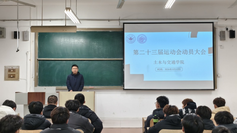 为进一步加强学院体育文化建设,提升学院运动员队伍专业训练水平,更好的在赛场上展现土木学子风采,3月12日,我院在6104教室举行2026年运动会动员大会。学生工作办公室主任马俊原主持,学院党委副书记卢永波、学院辅导员、体育学院教练员及各运动队队员参加本次活动。