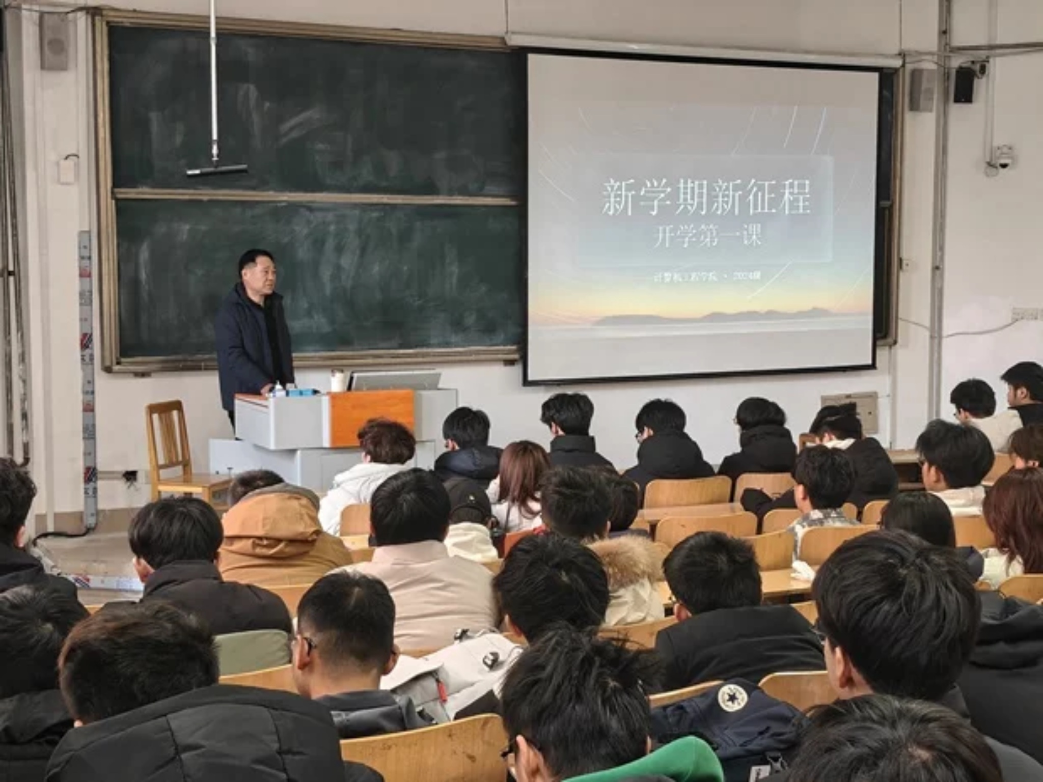 新学期,新目标,新起航。为全面贯彻党的二十届四中全会精神,培养有理想、敢担当、能吃苦、肯奋斗的新时代青年,激励同学们以昂扬姿态迎接新学期,引导广大学子尽快从假期状态调整到学习状态,2026年3月15日,根据学校工作要求和计算机工程学院工作实际,各年级结合开学第一周所带学生实际情况,组织召开“开学第一课”主题班会。计算机工程学院党委书记任秀洁和党委副书记朱万山分别参加了2025级新生和2024级学生的开学主题班会。