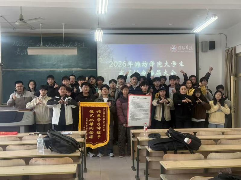 为传承武术精神、凝聚社团力量,顺利完成学生骨干新老交替,推动校园武术文化高质量发展,潍坊学院大学生武术协会2026年换届大会于2026年3月19日在体育学院110教室顺利召开。协会指导老师秦志华、往届干部代表、全体会员共同参会,见证换届交接与使命传承。大会由武协负责人高琛主持。