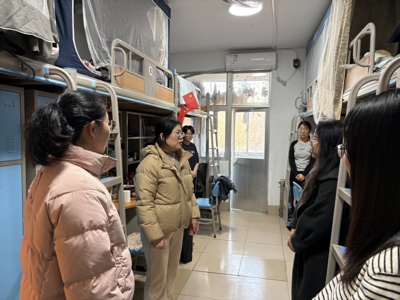 老师们逐间细致检查宿舍卫生状况、用电安全规范及各类设施运行情况,与同学们亲切交谈,详细询问其日常学习、生活状态与实际需求,反复叮嘱大家做好通风保暖、规范用电操作,自觉维护整洁有序的宿舍居住环境。走访过程中,他们认真倾听学生的诉求与建议,对排查发现的问题逐一现场记录、梳理汇总,明确要求相关部门及时跟进、妥善整改。