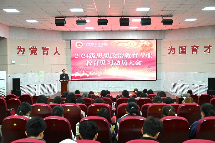 3月26日,马克思主义学院召开2024级思想政治教育专业教育见习动员大会。马克思主义学院党委副书记、副院长黄本玉,见习指导教师王子超、田洁、姜作冰、邰淑波出席,2024级全体见习学生参会。
