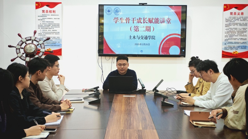 为进一步强化学生骨干责任担当,提升班级管理与服务能力,3月26日,以“勤学习 善作为 树新风”为主题的2026年第二期学生骨干成长赋能讲堂在6104会议室召开。学院各年级辅导员、学生骨干共同参加。
