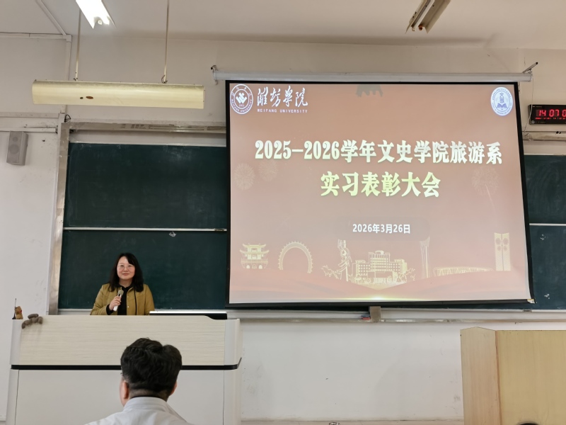 为全面总结酒店实习实践成果,表彰优秀实习学子,传承实操经验与优良学风,夯实专业根基,文史学院旅游系于3月27日下午在6312召开实习表彰大会。本次大会对圆满完成实习任务的2023级旅游管理专业学生进行表彰,系主任牟莉莉教授、辅导员魏涛老师及旅游系全体教师出席,系副主任郭文康老师主持会议,2023级、2024级旅游管理专业全体同学共同参会。