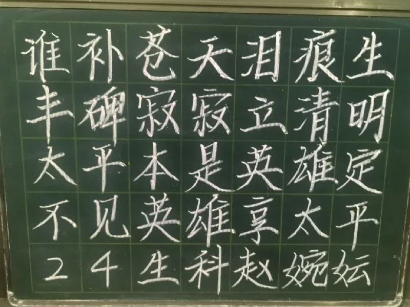 李雨晗同学以苍劲有力的粉笔书写“烟雨清明祭国殇,忠魂永卧柏苍苍。一腔热血酬家国,万古英名日月长”,字句铿锵间满含对英烈忠魂的深切追思,一笔一画都承载着青年学子对英雄的崇高敬意;