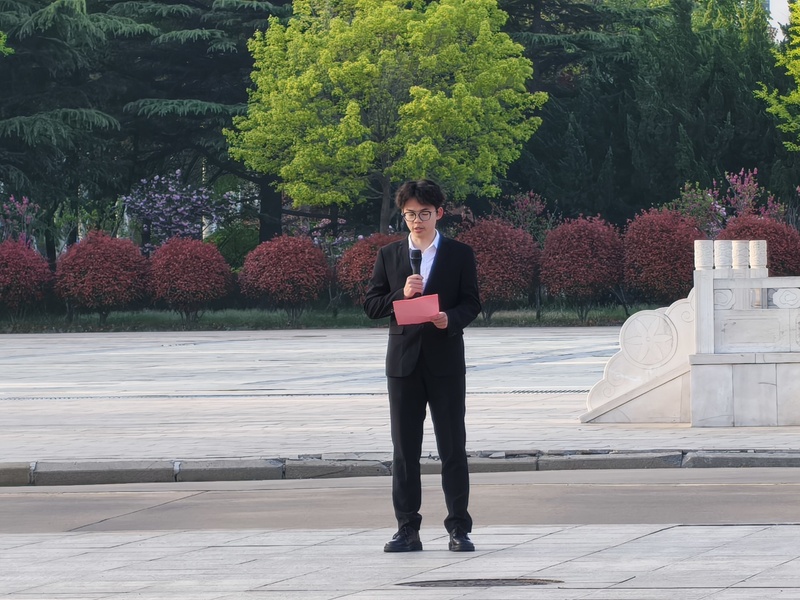 随后,国家奖学金获得者时君正分享了自己的成长感悟。他从党史校史中汲取力量,回顾了在科创竞赛中迎难而上、学以致用的经历。他表示,创新的锐气是强国建设的引擎,青年担当虽小,同心聚力便是复兴脊梁,号召同学们把个人发展融入国家富强与民族复兴的伟大事业中。