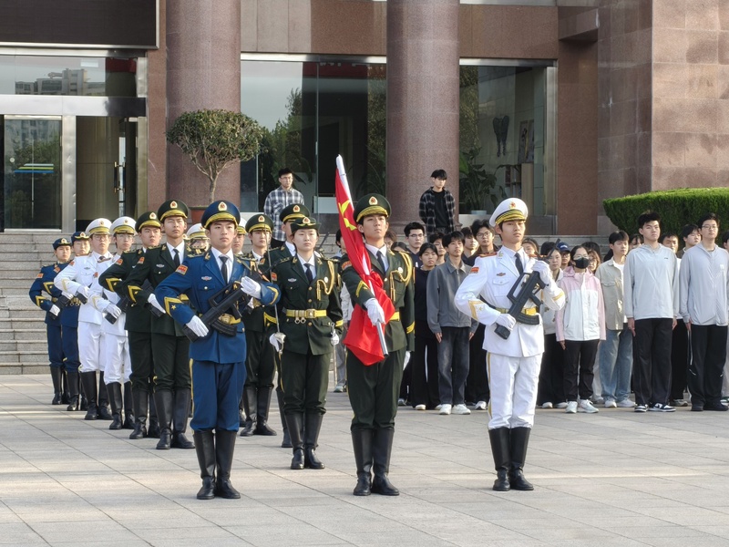 2026年4月13日清晨,春风和煦,朝阳初升。我院大一学生及老师齐聚行政楼前国旗广场,隆重举行“赓续百年初心,书写七五华章”主题升旗仪式。本次活动旨在赓续红色血脉、厚植爱国情怀,激励师生以昂扬姿态迎接中国共产党成立105周年及建校75周年,凝聚青春力量,勇担时代使命。
