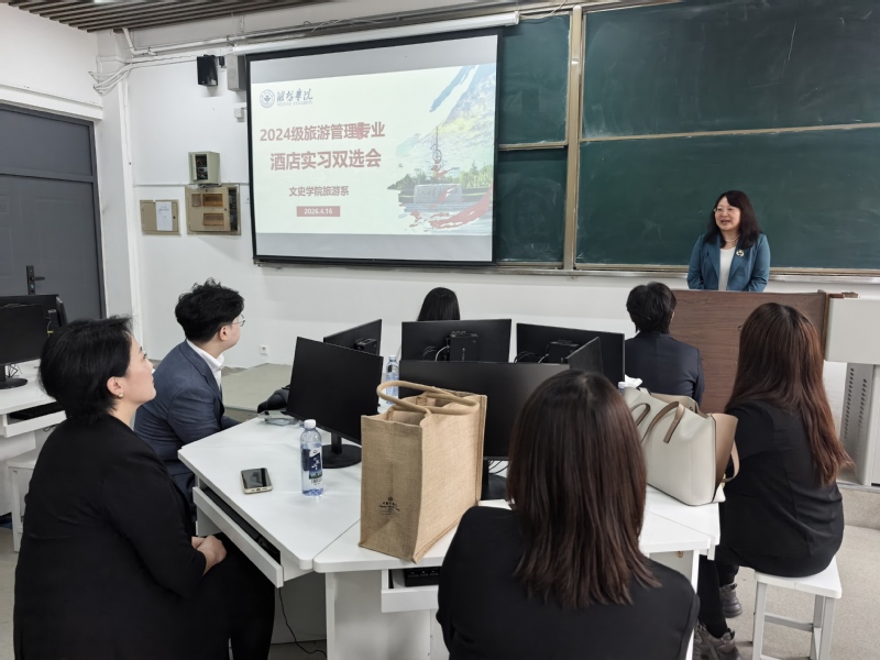 为扎实推进旅游管理专业本科集中性实践课程落地,深化校企合作,助力学生高质量实习就业,4月27日下午,文史学院旅游系在6号教学楼6111智慧文旅实验室成功举办2024级旅游管理专业本科学生酒店实习双选会。